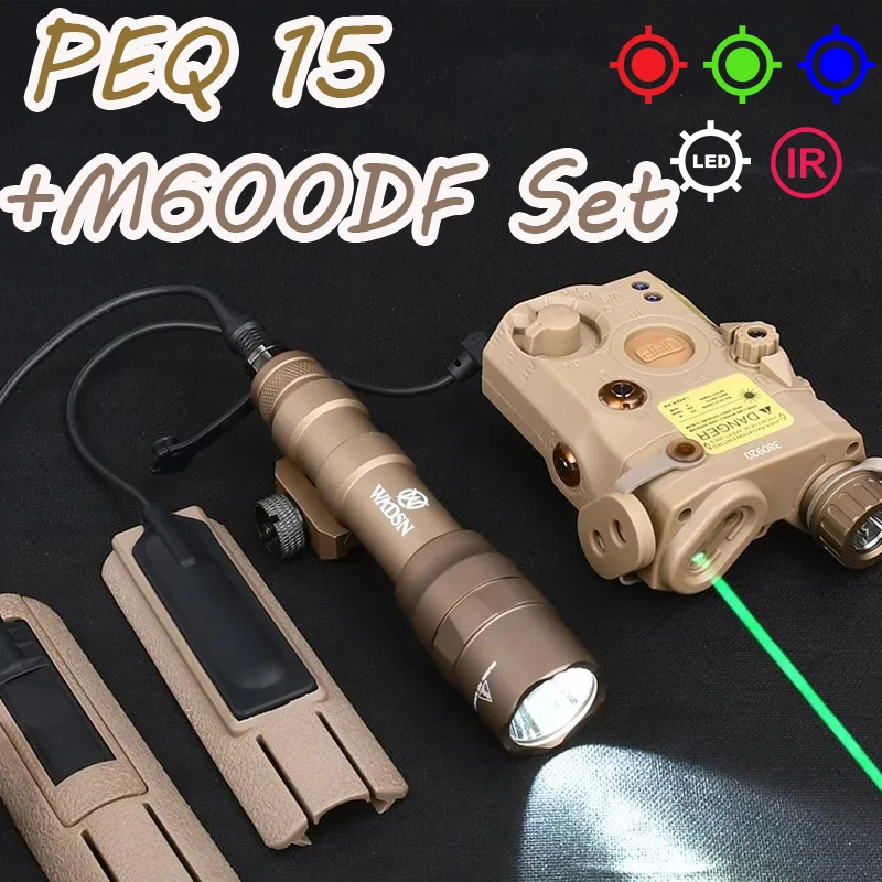 Juego táctico PEQ M600DF, luz IR roja, verde y azul, linterna peq15 LA5C de 1400 lúmenes, luz blanca, ranura para tarjeta trasera de Metal compatible con riel de 20mm