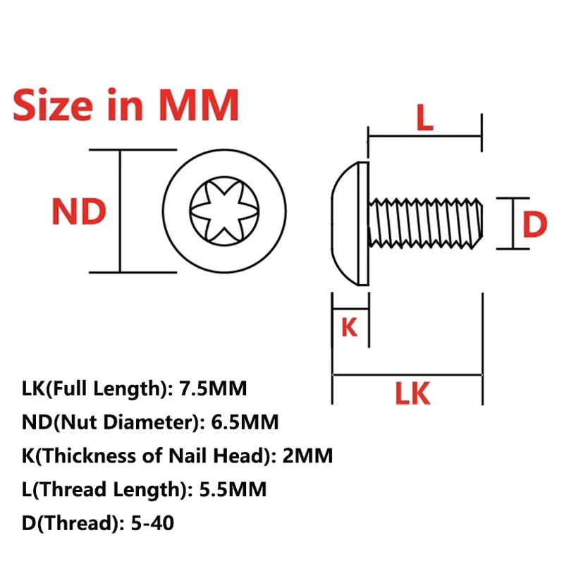 Hilo: hilo estadounidense 5-40 cabeza Torx media redonda