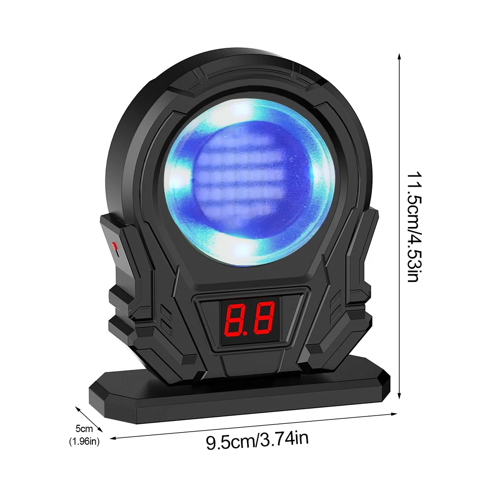 3.Sistema de retroalimentación de decoloración: el objetivo láser presenta luces rojas y azules alternadas alrededor del ojo de pez, que ofrecen retroalimentación visual en tiempo real cuando se golpea.Puede colocarlo en cualquier superficie plana, colgarlo en una pared o fijarlo a superficies de acero utilizando los imanes traseros incorporados para obtener opciones de entrenamiento flexibles.