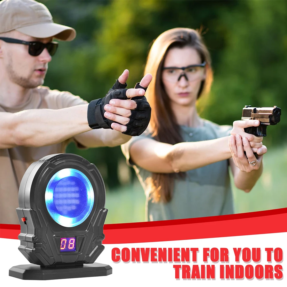 2.Fácil de usar: perfecto para tiradores de todos los niveles, este objetivo de pistola electrónica le permite practicar sus habilidades de tiro en interiores, de forma segura y cómoda, sin necesidad de municiones en vivo.Simplemente colóquelo sobre cualquier superficie plana para un entrenamiento versátil.