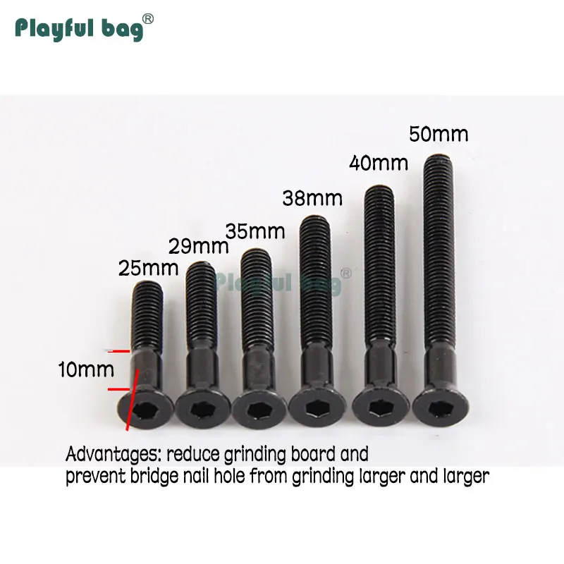 Juguetón bolsa 25/ 29/ 35/ 38/ 40/ 45/ 50mm negro hexagonal puente clavo monopatín accesorio M5 uñas opp bolsa AMB34