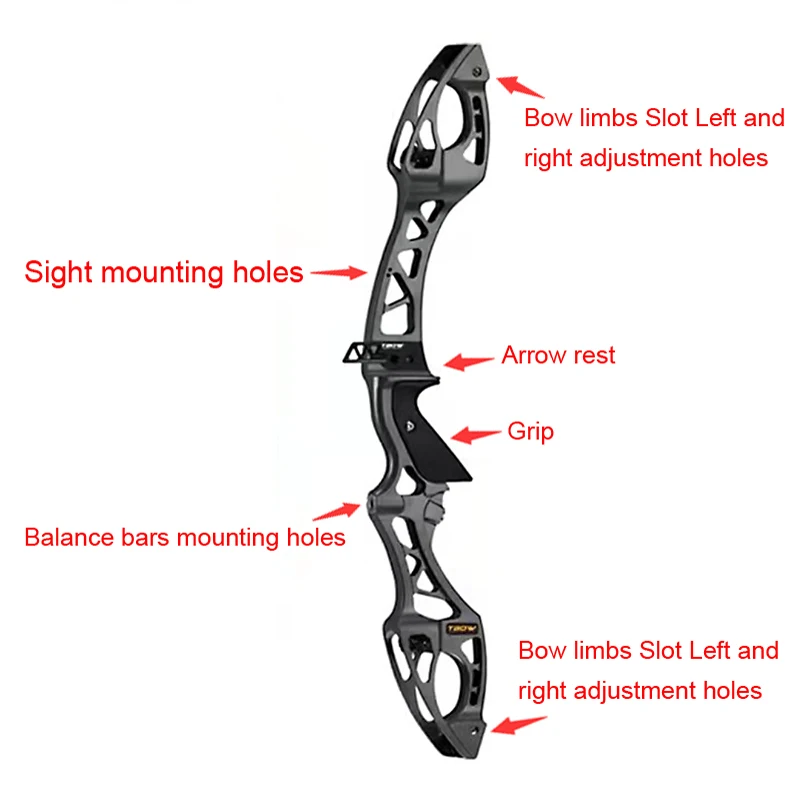 1. El mango del arco es Aleación de aluminio; Superficie de pintura mate,