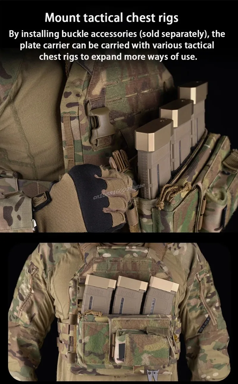 Al montar los accesorios de la hebilla (se venden por separado), el soporte de la placa se puede llevar con varios aparejos tácticos para el pecho, carteles para ampliar más formas de uso.