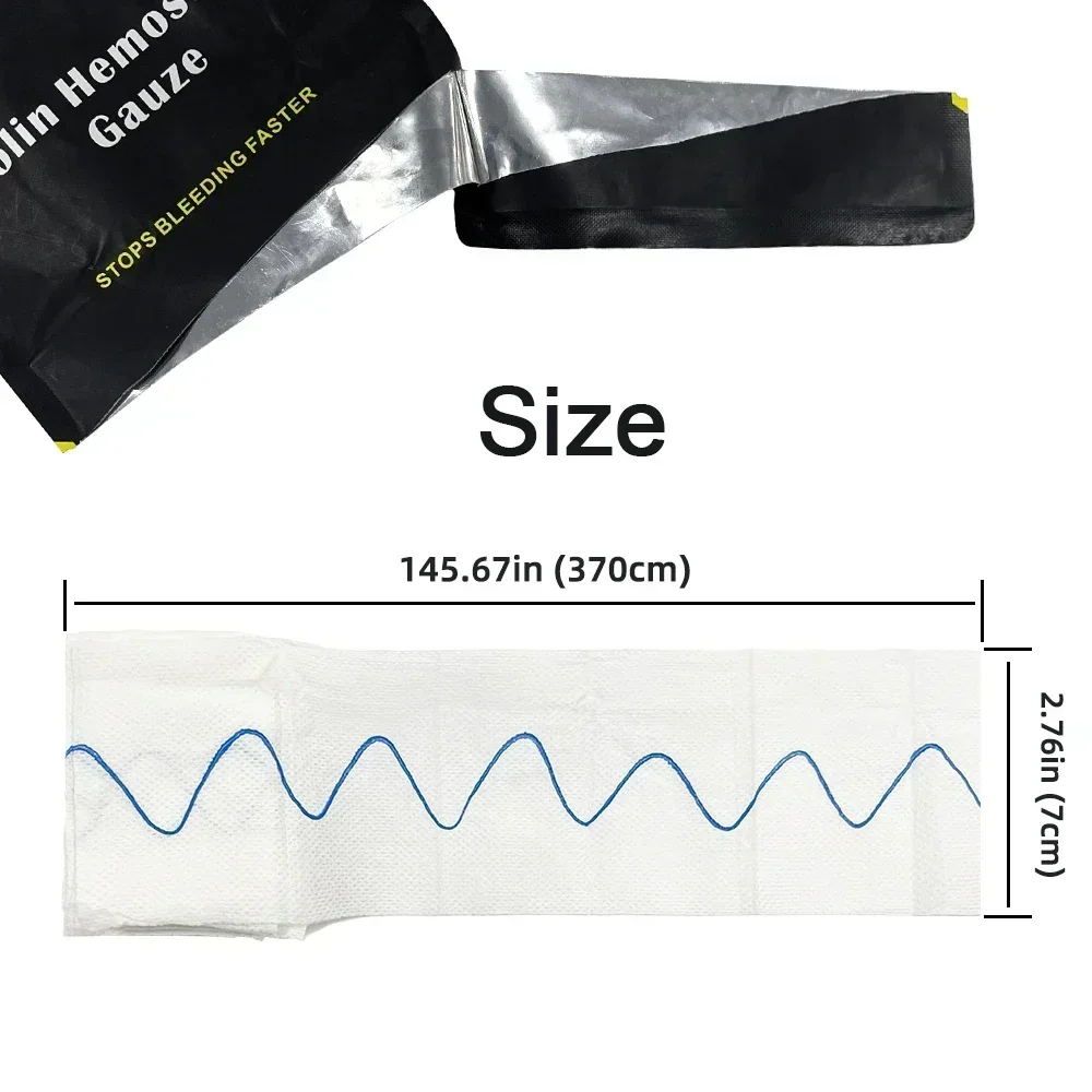 Kaolín hemostático, gasa, combate, traumatismo de emergencia, pliegue en Z, soluble para Ifak, botiquín de primeros auxilios militar táctico, vendaje médico para heridas