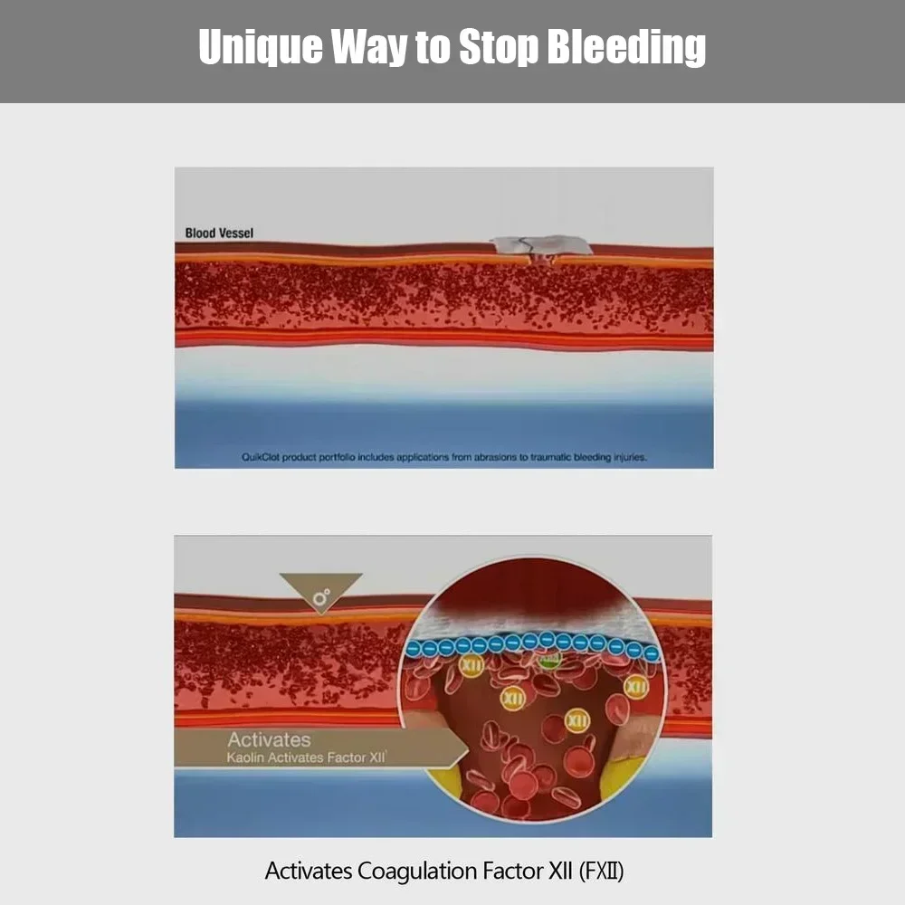 El caolín puede entrar en contacto y activar directamente FXXL/FXI, iniciando la ruta de coagulación endógeno; Al mismo tiempo, absorbe rápidamente las moléculas de agua de la sangre, concentra las plaquetas y el trombín en la sangre, acelerando así el proceso de coagulación del cuerpo;