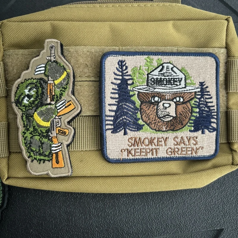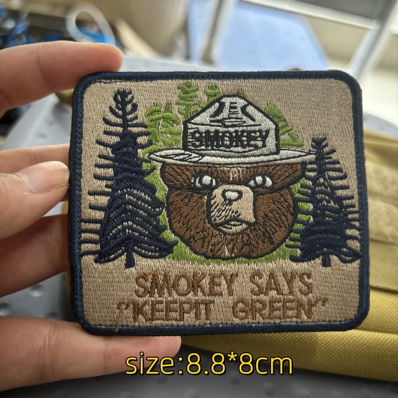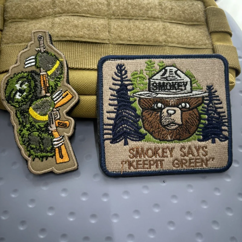 Keep It Green parches tácticos bordados de animales de la naturaleza, Hook & Loop, oso ahumado, mono, insignia de moral, pegatinas militares para mochila