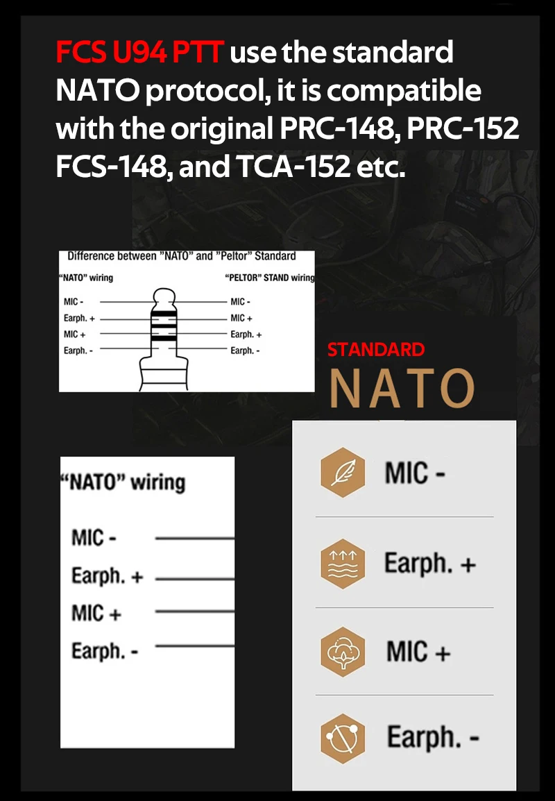 Kenwood adaptador de auriculares FCS militar táctico U94 PTT NATO 6-PIN para RAC TMC COMTAC Earmor caza Airsoft Cable Plug