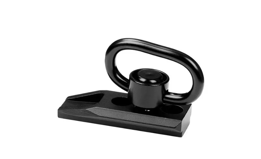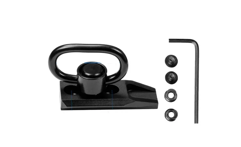 Fabricado en aluminio de calidad aeronáutica. Acabado anodizado resistente a la corrosión. Se conecta al sistema KeyMod. Adaptador de montaje en riel de perfil bajo para aumentar la movilidad y disminuir el factor de "enganche". Artículo que incluye soporte de eslinga y eslinga QD como se muestra en la imagen. Operación de desmontaje rápido, simplemente presione el botón para girar hacia adentro y hacia afuera desde el soporte. 360°rotación libremente. Peso: 45 gramos.