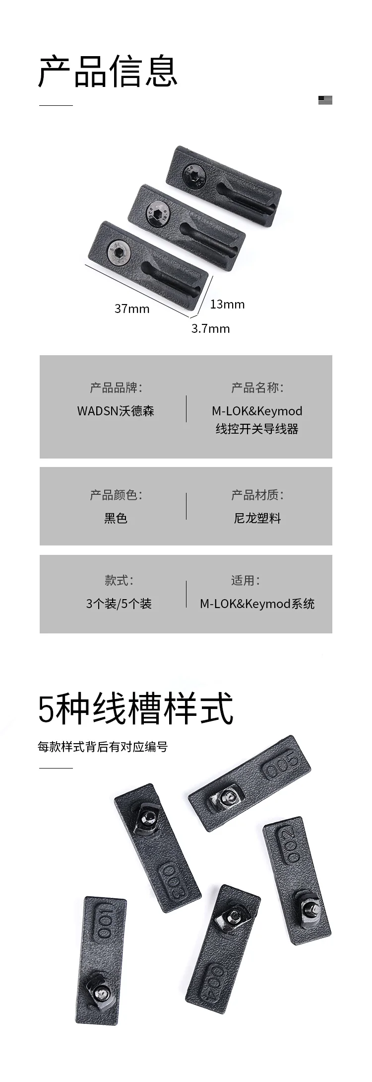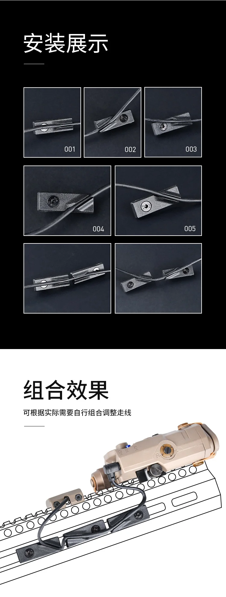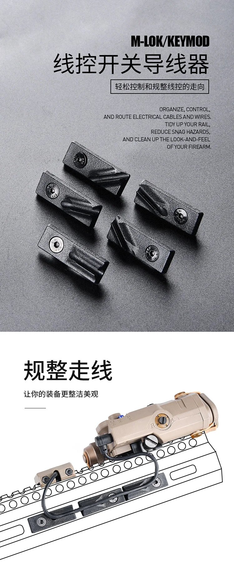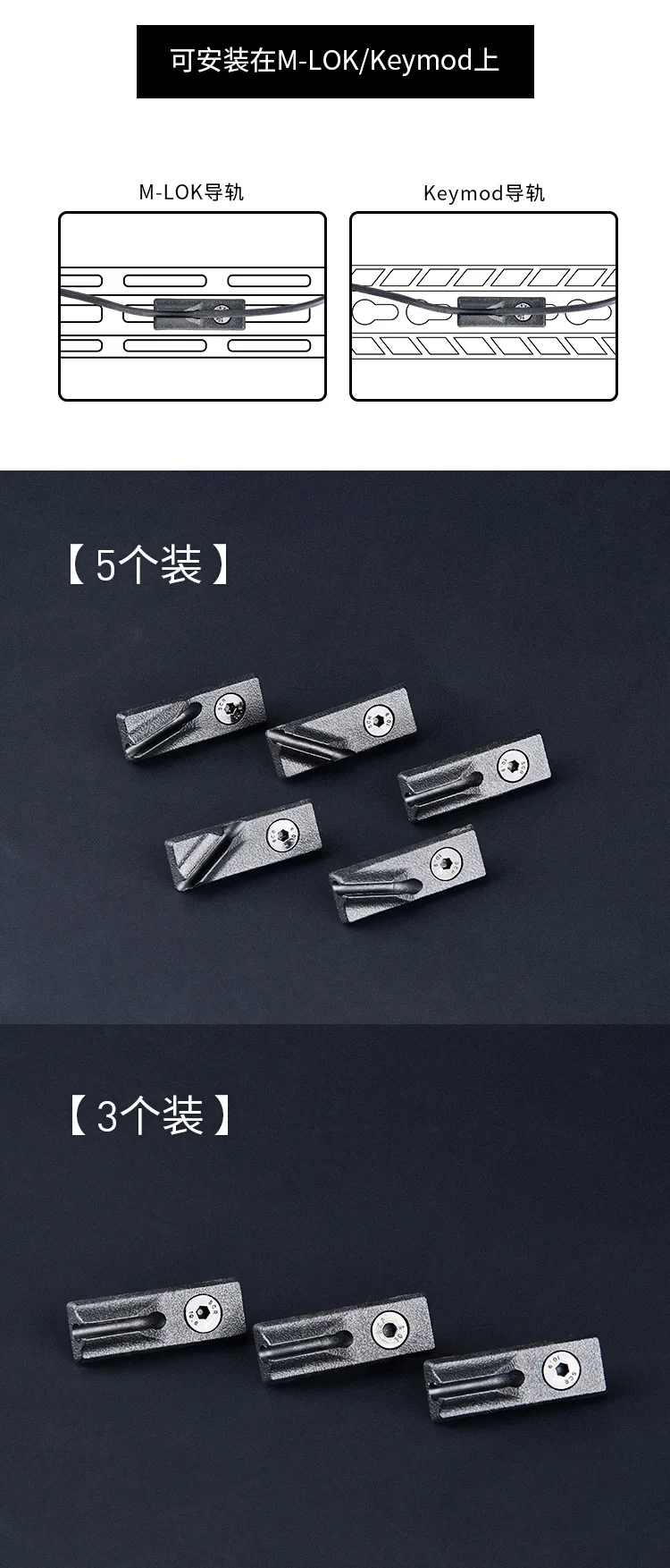Keymod-cubierta de riel de M-LOK, sistema de guía de alambre de metal, Clip de Cable de 3 piezas para PEQ DBAL-A2 M300, interruptor de linterna táctica, fijación trasera, 5 unids/set
