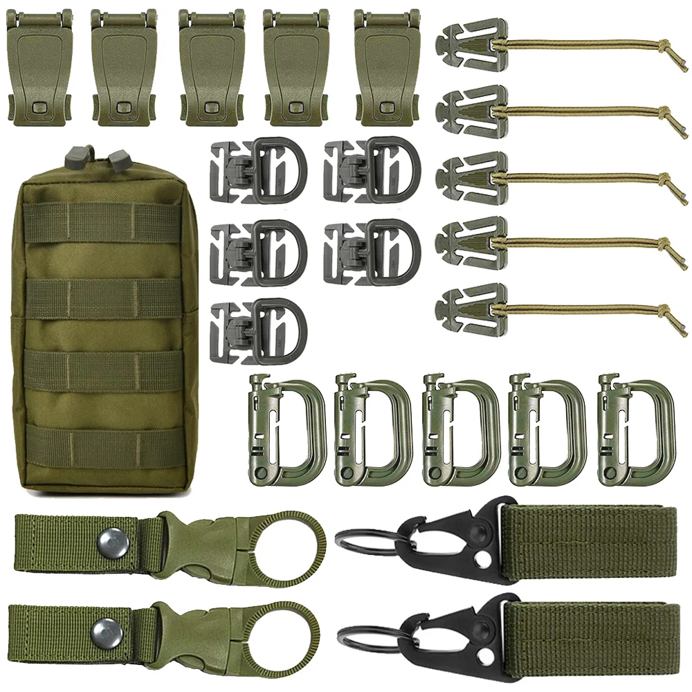 Kit de 25 accesorios Molle, clips y correas de accesorios Molle con bolsa para mochila táctica de 1", cinturón para chaleco