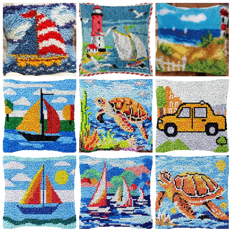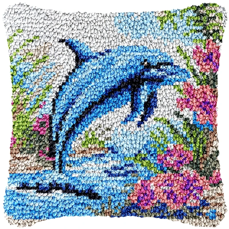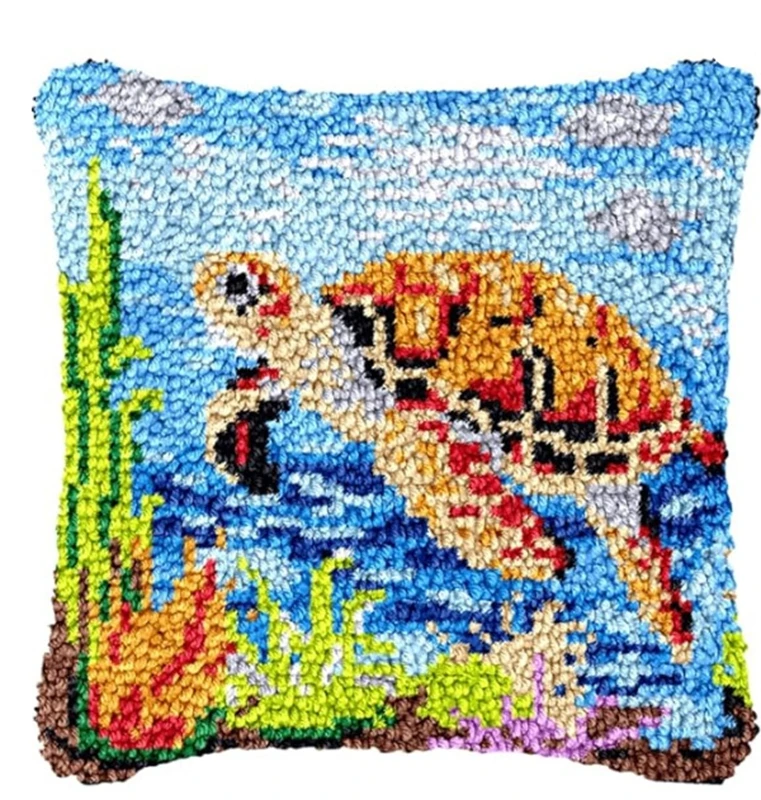 Diy pestillo gancho almohada alfombra Kit Ocean Series con Animal delfín tortuga marina bordado tejido a mano para decoración del hogar