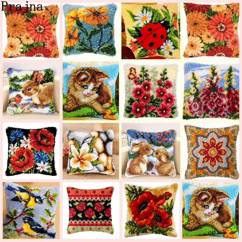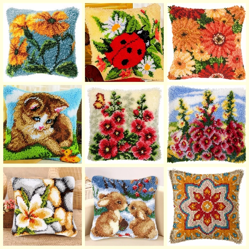 Planta Animal serie segmento bordado almohada flores hierba lana gruesa punto de cruz 3D pestillo gancho almohada bordado Kit DIY