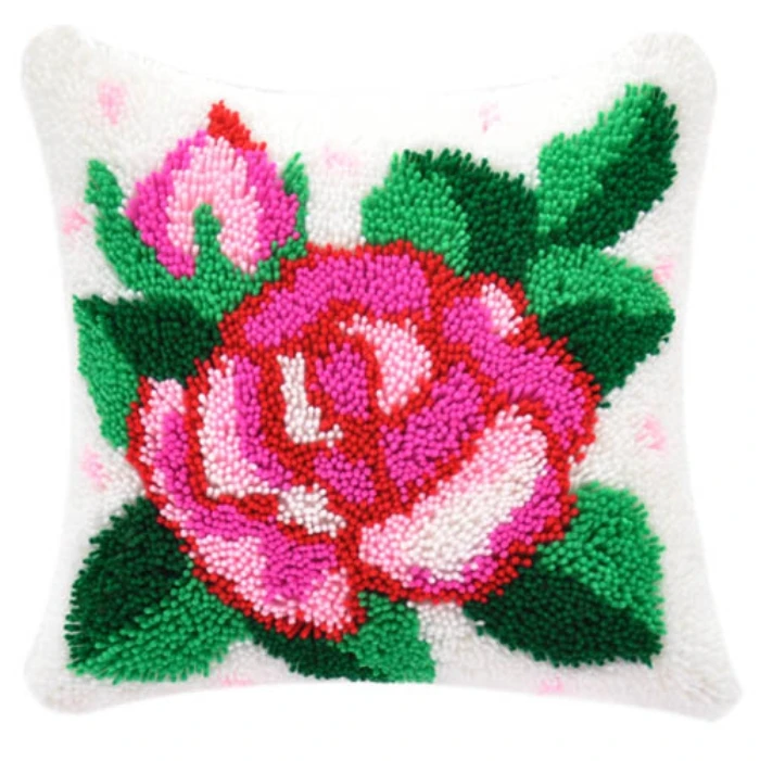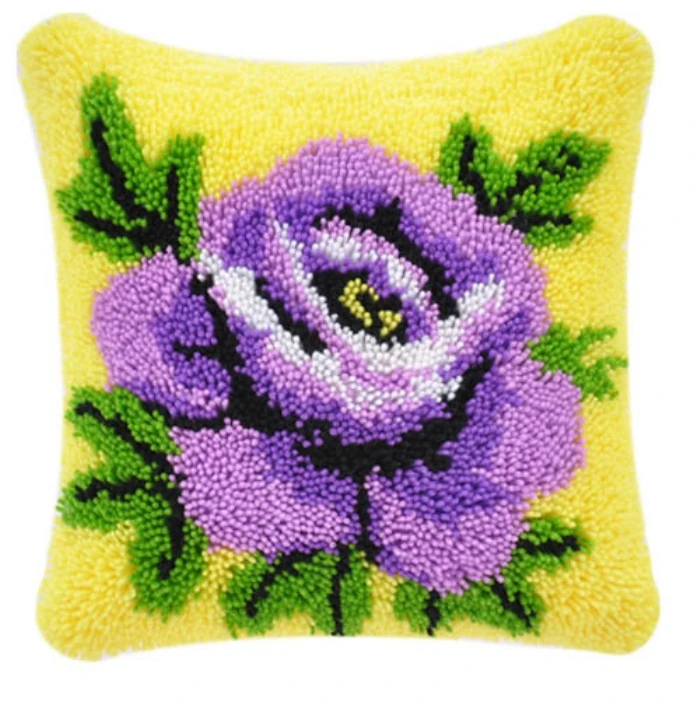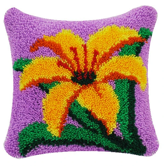 Kit de bordado de almohada de segmento de planta de tulipán, punto de cruz de lana gruesa, gancho de pestillo 3D, flores de hierba, bricolaje