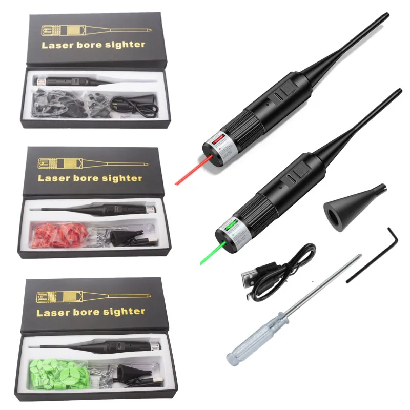 Kit Boresighter láser recargable 32 adaptadores.17.177.22LR a.50 Collimador láser calibre 12GA