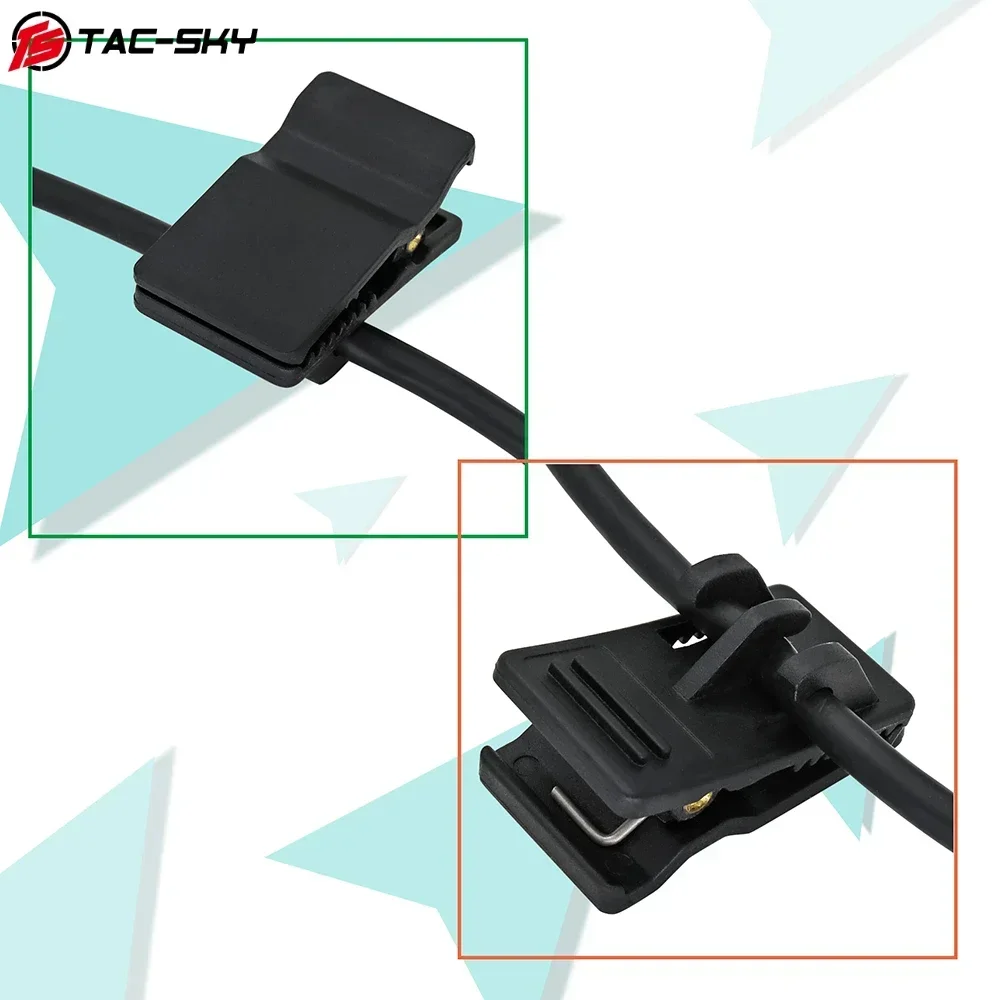 El resistente clip trasero proporciona una conexión firme y hay un clip de metal para el chaleco/correa de hombro en la parte posterior.Fácil de instalar y fácil de operar.Adecuado para enchufes estándar militares, botones pulsar para hablar.