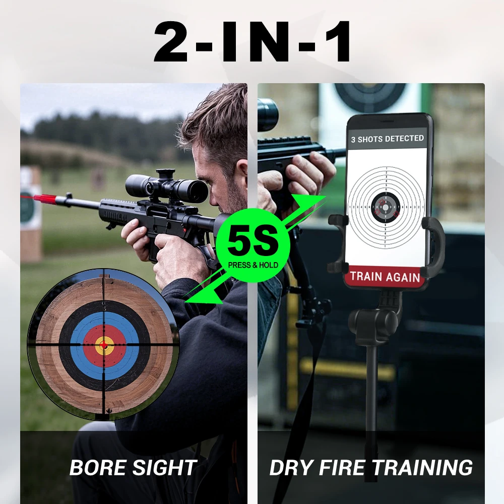 Funcionalidad dos en uno: combina funciones de cartucho de entrenamiento y boresighter.Cambie fácilmente entre modos para entrenamiento de fuego seco o alineación de la vista.