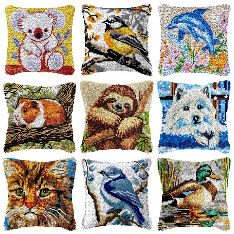 Kit de gancho de pestillo de Animal bonito, paquete de almohada con nudo de perezoso, paquete de botones de pájaro, delfín, Smyrna, cojín de punto de cruz para Kit de costura