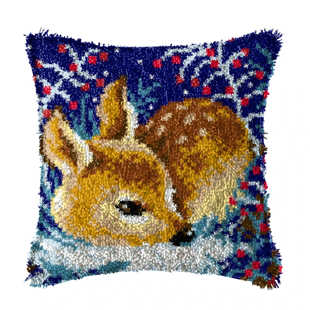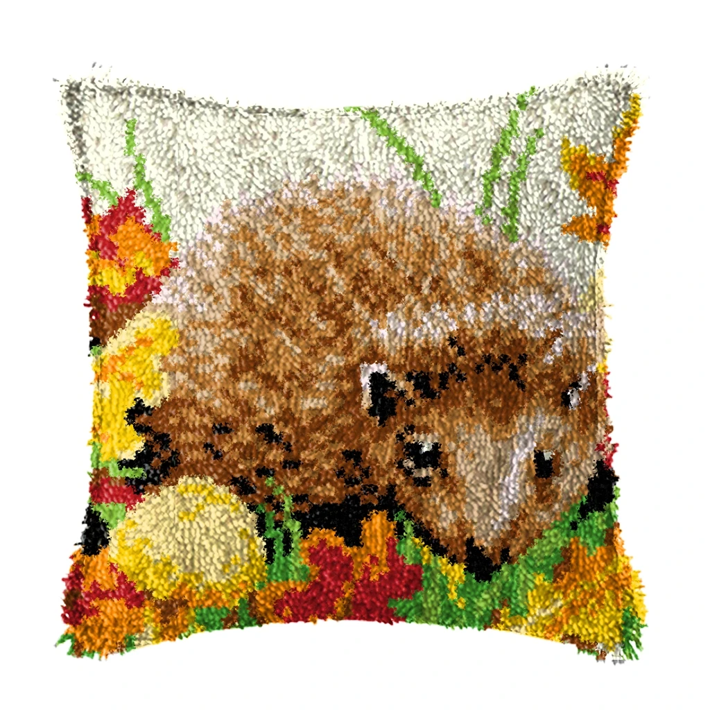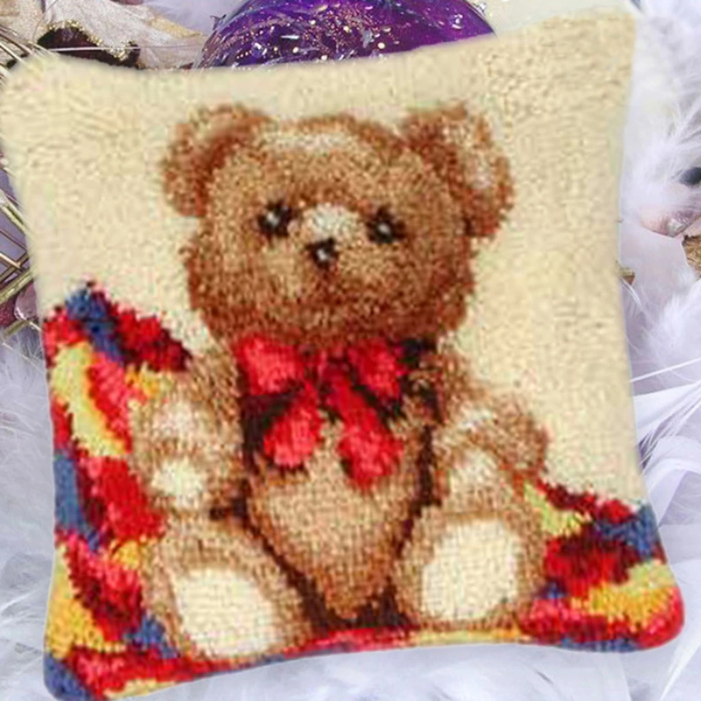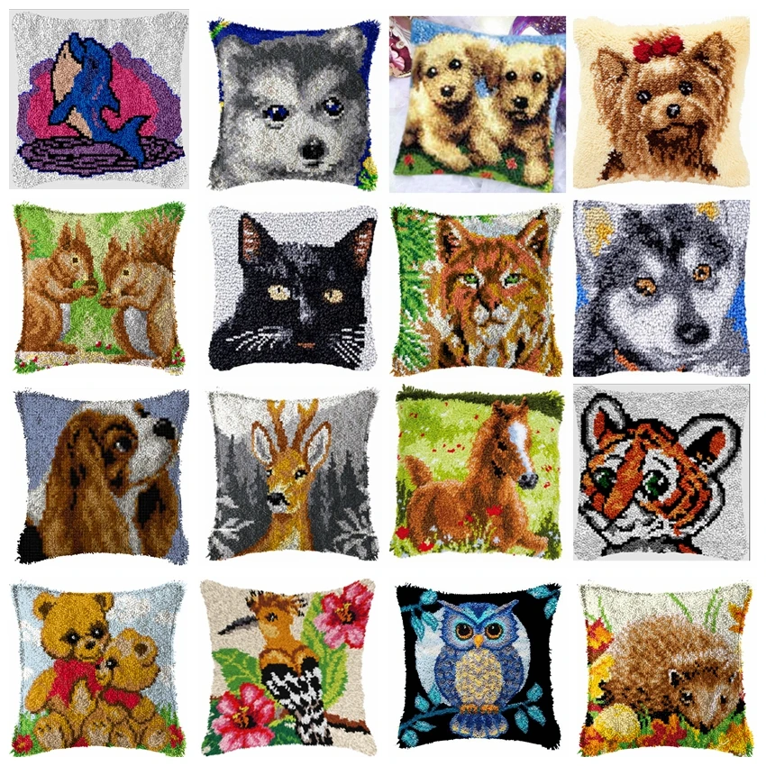 Kit de gancho de pestillo de animales lindos, paquete de almohada de nudo, Kit de pestillo de bordado de dibujos animados, juego de almohada de cojín Kussen para costura