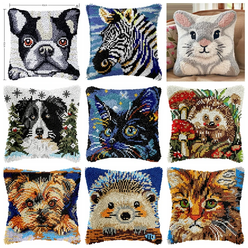 Kit de ganchos de pestillo de animales para perros y gatos con patrón impreso, tapiz bordado de alfombras, manualidades para adultos, kits de fabricación de alfombras, ganchos, hobby DIY