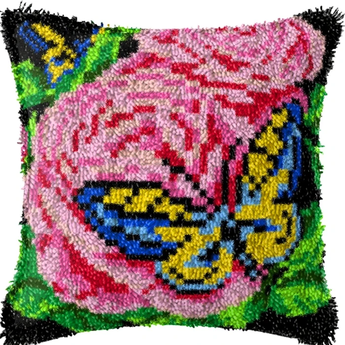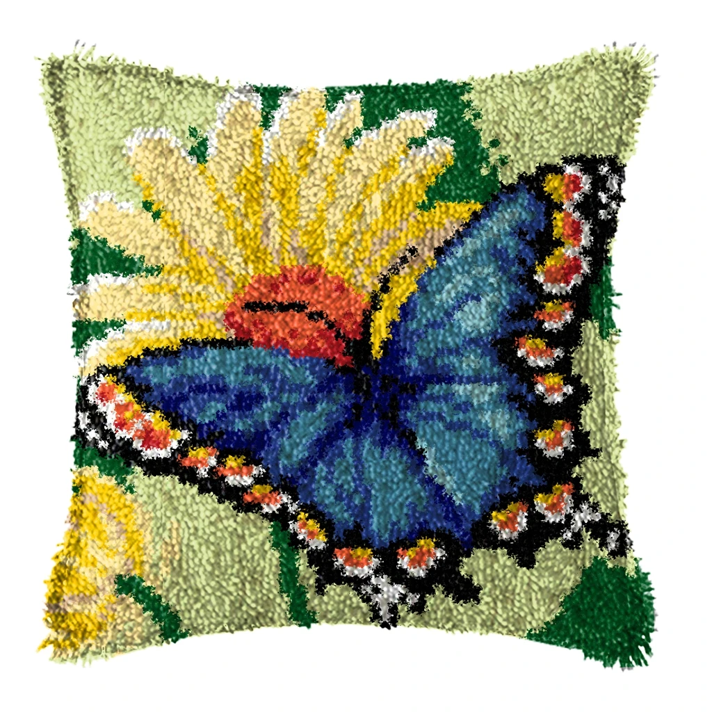 Kit de gancho de pestillo bordado de mariposa, cojín, alfombra de dibujos animados, gancho de pestillo, Kits de alfombra, paquete de almohadilla de botón, paquete Smyrna, decoración DIY