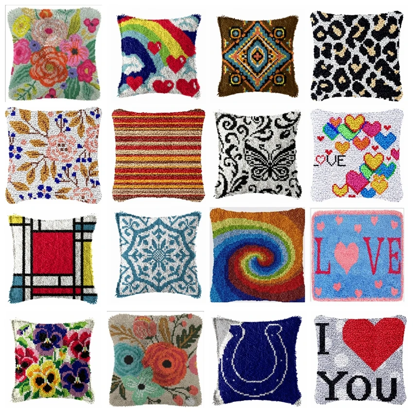 Kit de gancho de pestillo de bricolaje para almohada, Kit de gancho de pestillo de cojín de serie Retro, ganchillo de lona, alfombra bordada, Alfombra de nudo de punto