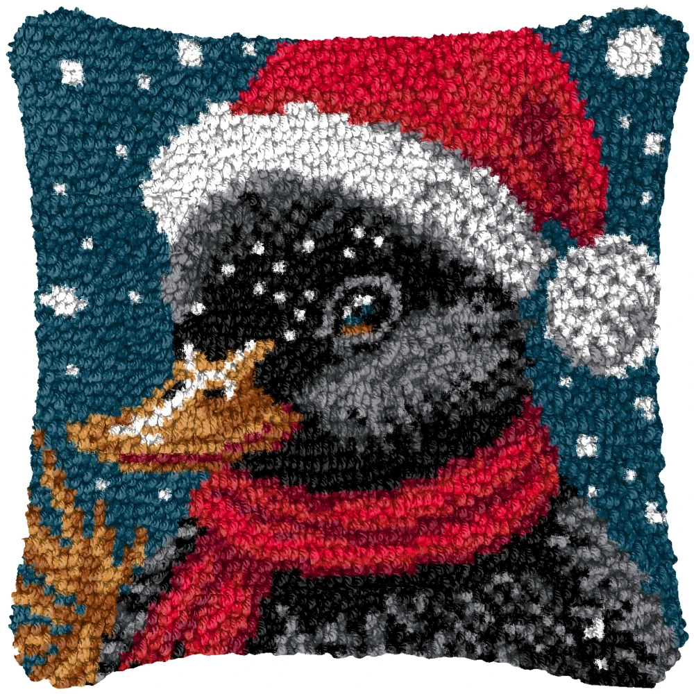 Kit de gancho de pestillo de ciervo de Navidad, paquete de almohada con nudo de Papá Noel, kits de gancho de pestillo bordado, juego de fundas de almohada para costura