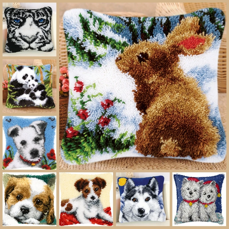 Kit de gancho de pestillo de conejo, Panda, perro, almohada de Animal de dibujos animados, juego de bordado, gancho de pestillo, punto de cruz, lienzo para bolsa de plástico hecho a mano