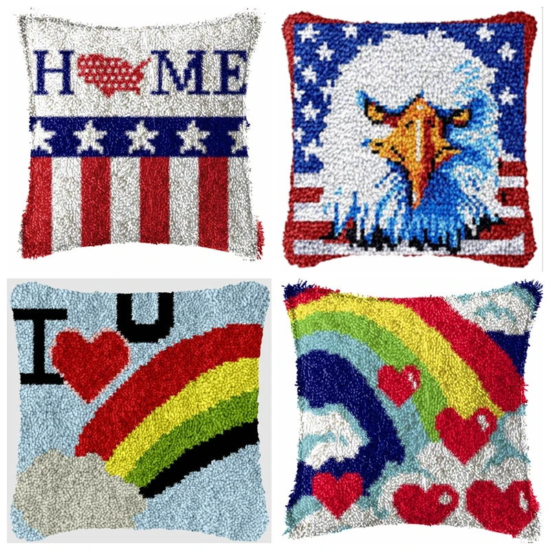 Kit de gancho de pestillo de estética occidental, cojines artesanales bordados de fútbol, paquete de almohada con nudo, paquete de botones Smyrna, artesanía de red DIY