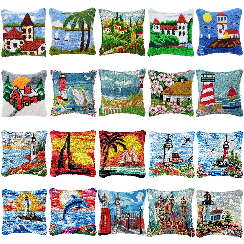 Kit de gancho de pestillo de faro náutico, manualidades para adultos al aire libre, tela para bolsa de ganchillo, aguja, manualidades, almohada, pestillo, gancho, Kit de alfombra DIY