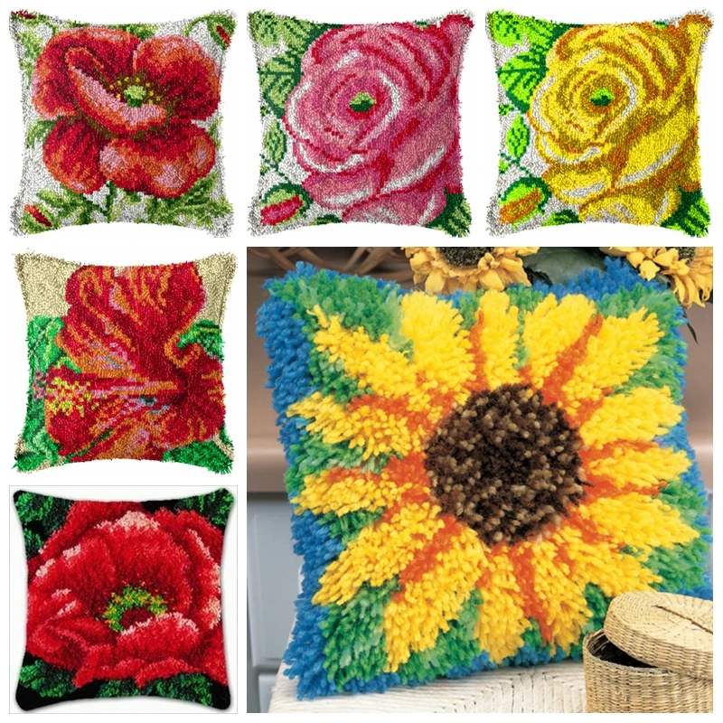 Juego de ganchos de pestillo de la serie de plantas de flores, almohada bordada, rosa, girasol, flores, juego de ganchos de pestillo, lienzo de punto de cruz para bolsa de plástico