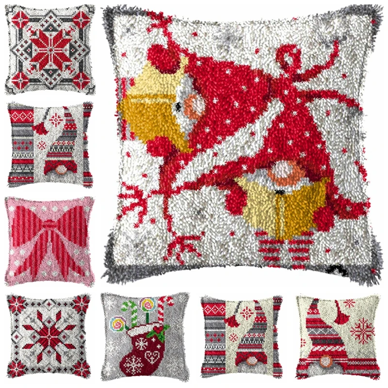 Kit de gancho de pestillo de Papá Noel, paquete de almohada con nudo, Kit de gancho de pestillo bordado de dibujos animados, funda de almohada de cojín, conjunto de Kussen para costura