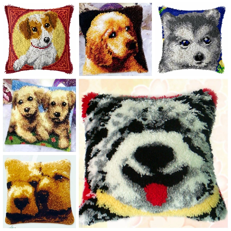 Kits de gancho de cierre de perro lindo almohada Diy Animal de dibujos animados hecho a mano impreso lienzo cojín gancho de cierre Kit Klink Haak kleed accesorio