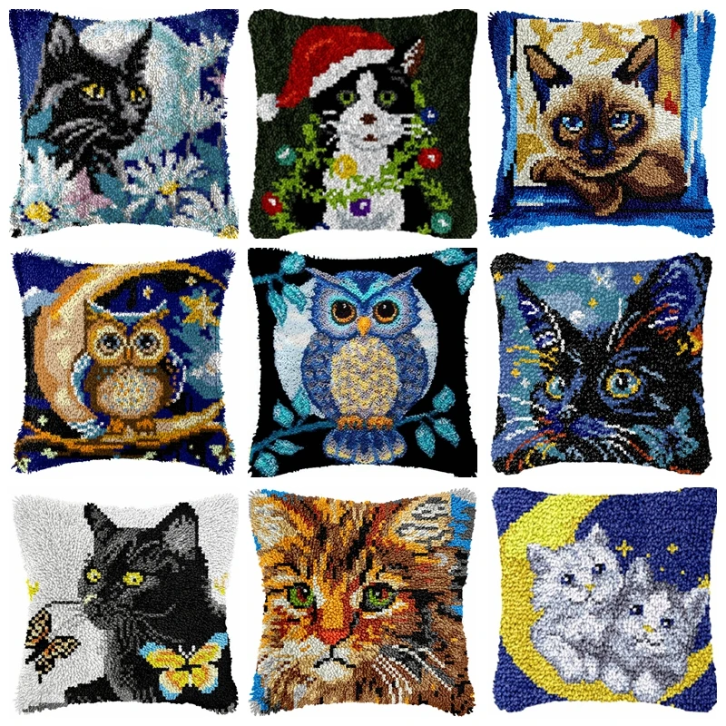 Kit de gancho de pestillo serie Cat, alfombrillas, cojín, almohada, manualidades DIY, paquete de botón de costura, cojín, gancho de pestillo bordado, alfombra