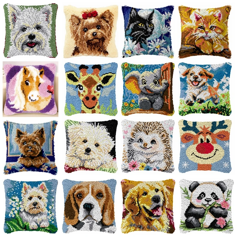 Kit de ganchos de pestillo de la serie de patrones de animales, paquete de almohada con nudo de flores Datura, kits de ganchos de pestillo para bordado, funda de almohada de cojín Vintage