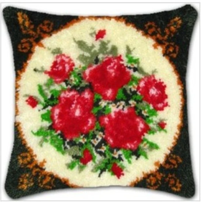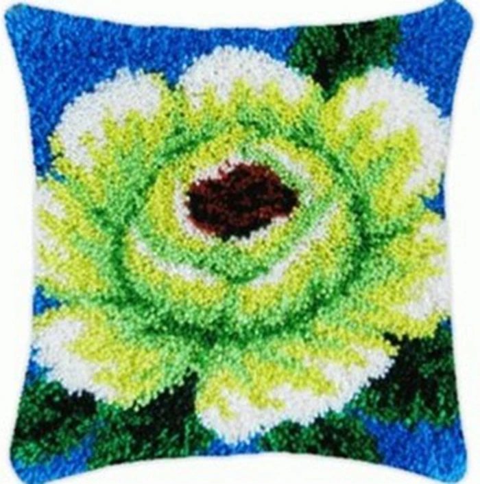 Kit de gancho de pestillo de la serie de plantas de flores, almohada bordada hecha a mano de mariposa, almohada bordada con segmento 3D, suministros de artesanía de lana