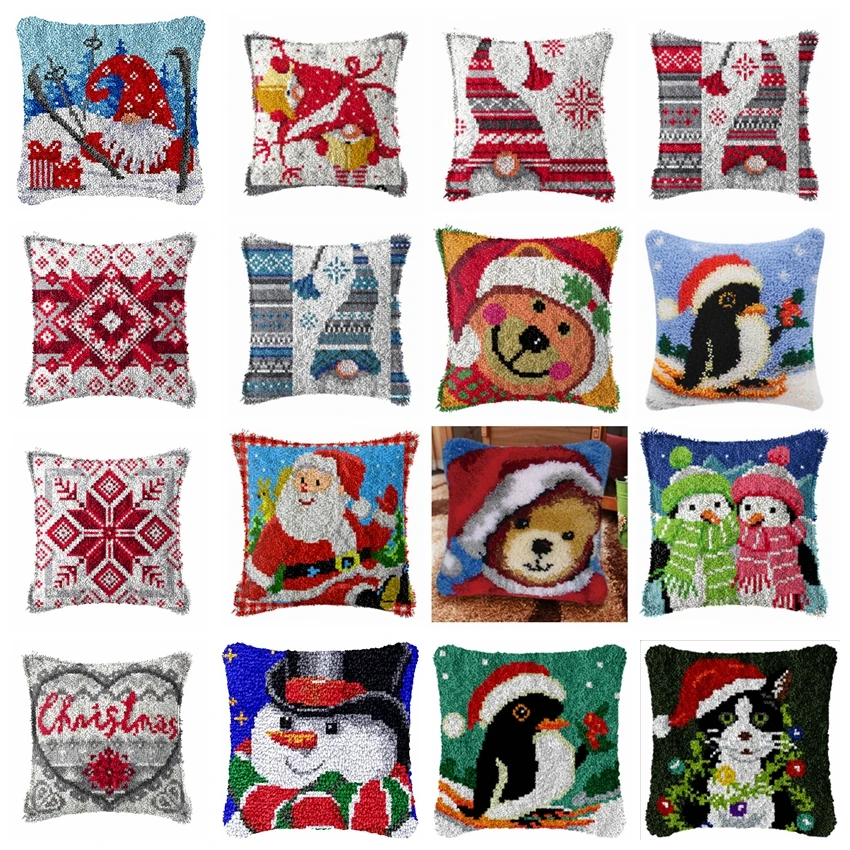 Kit de gancho de pestillo de serie navideña, alfombrillas, cojín, almohada, manualidades DIY, botón de costura al aire libre, paquete, cojín, gancho de pestillo bordado