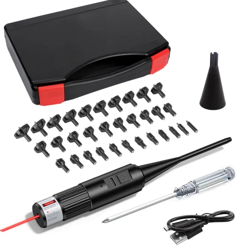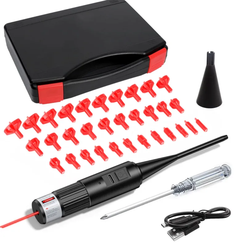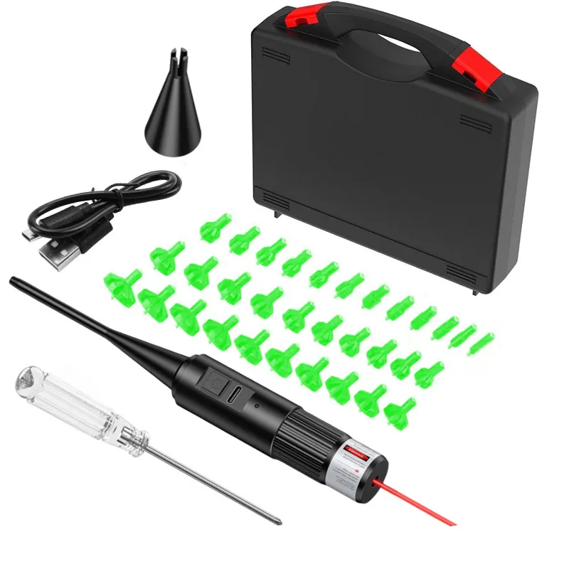 Kit láser de mira de orificio recargable, adaptadores de 32 Uds para colimador láser de caza de calibre.17.177.22LR a 12GA