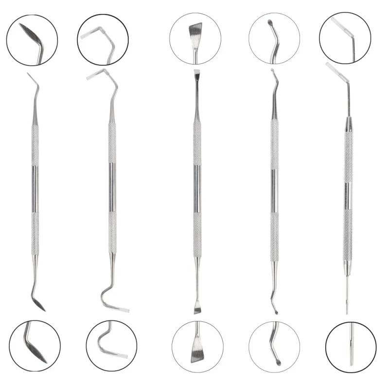 3: Una variedad de formas y diferentes formas de herramientas de dos cabezas son ideales para raspar la suciedad y los residuos en lugares difíciles de alcanzar.