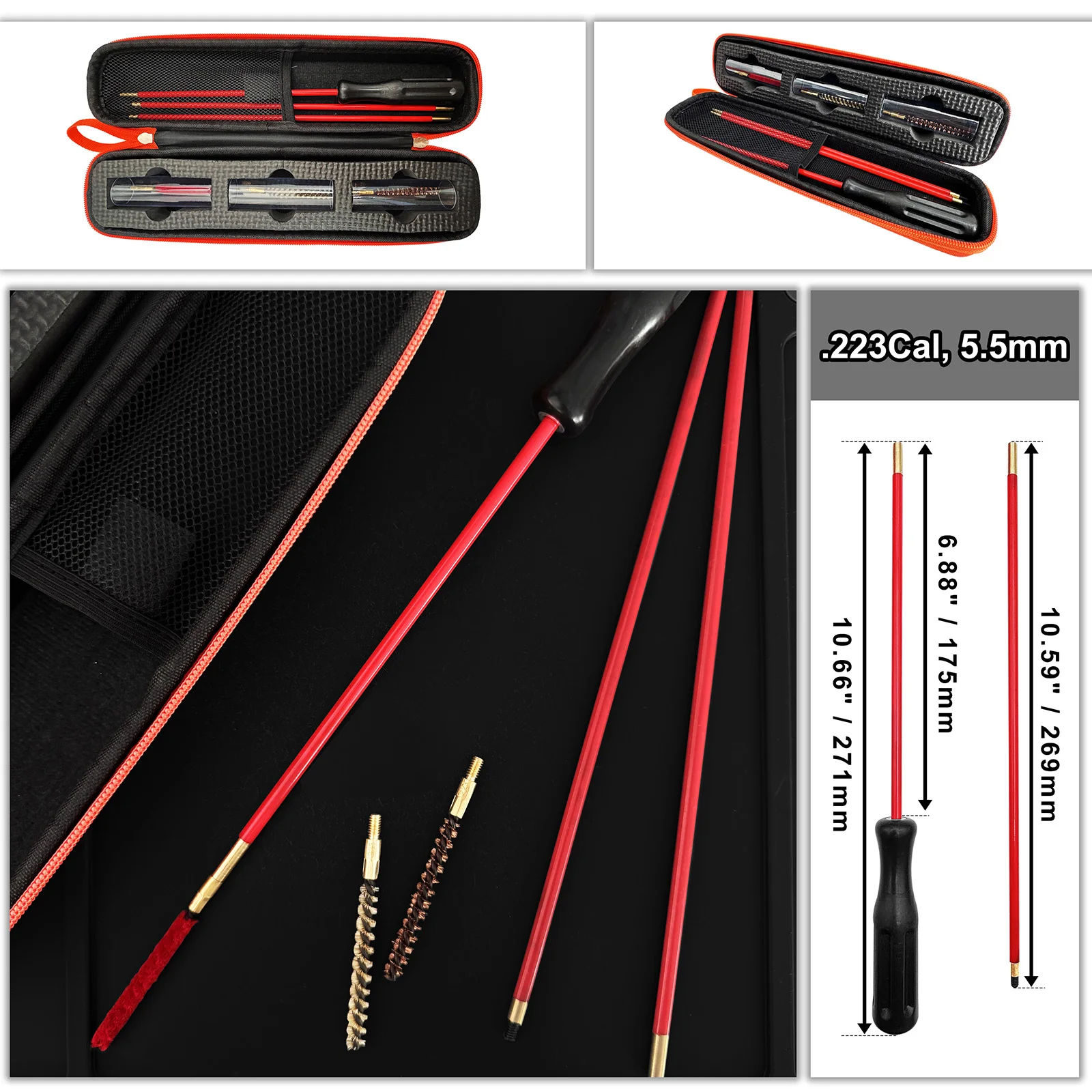 [.223Cal, kit de limpieza de 5,5 mm]-Varilla de limpieza + 2 varillas de extensión + cepillo de nailon 223cal + cepillo de bronce 223cal + cepillo de fregona 223cal + estuche de almacenamiento de limpieza