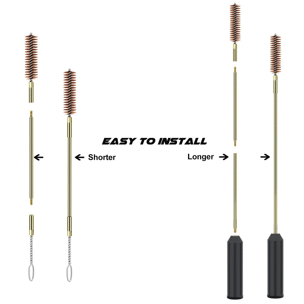 4.【Práctico y conveniente】 la varilla de latón del kit de limpieza de pistolas es desmontable, que se puede montar según las necesidades de pistolas de diferentes longitudes, por lo que es fácil de usar.La longitud de conexión de dos varillas de cobre alcanza 5.8 pulgadas, y la interfaz de rosca mejorada hace que la conexión sea más firme y la varilla larga no se soltará durante el proceso de uso.