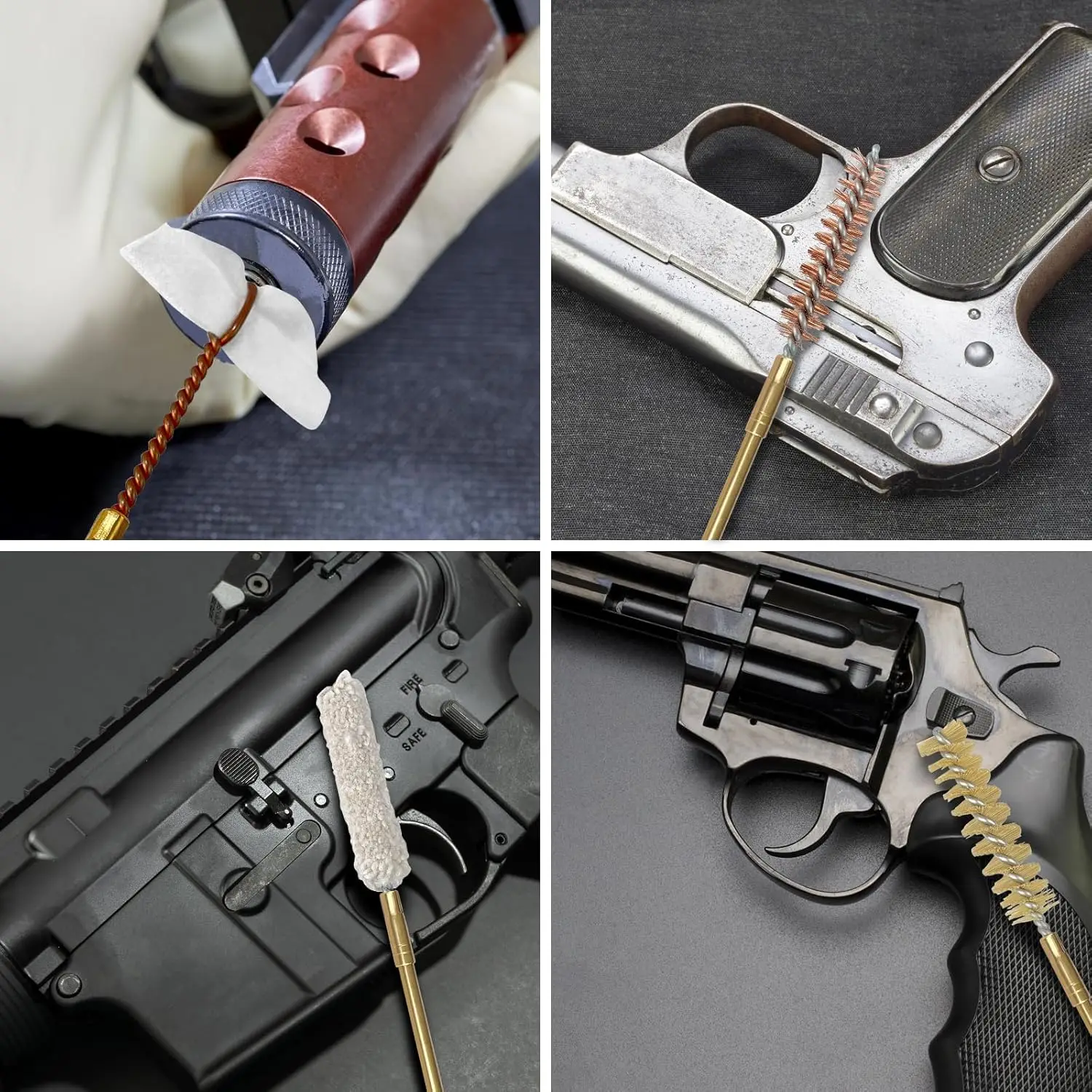 1.【Suministros completos de limpieza de armas】Servicios de 3 calibres de 9 mm cal.38 cal y.Kit de limpieza de pistola de aire 357cal;Cuenta con una amplia gama de herramientas esenciales que garantizan una limpieza y mantenimiento meticulosos de cada parte de su arma de fuego, garantizando un rendimiento óptimo.