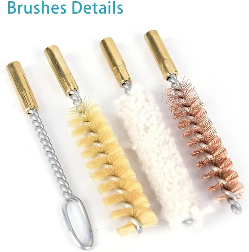 3. 【Cepillo de limpieza eficiente para pistola de fregona (cepillo de lana)】 El cepillo de limpieza para pistola de fregona con orificio incluido en este juego proporciona una limpieza y pulido final dentro del cilindro para absorber las partículas restantes y el lubricante, dejando el interior limpio y brillante.