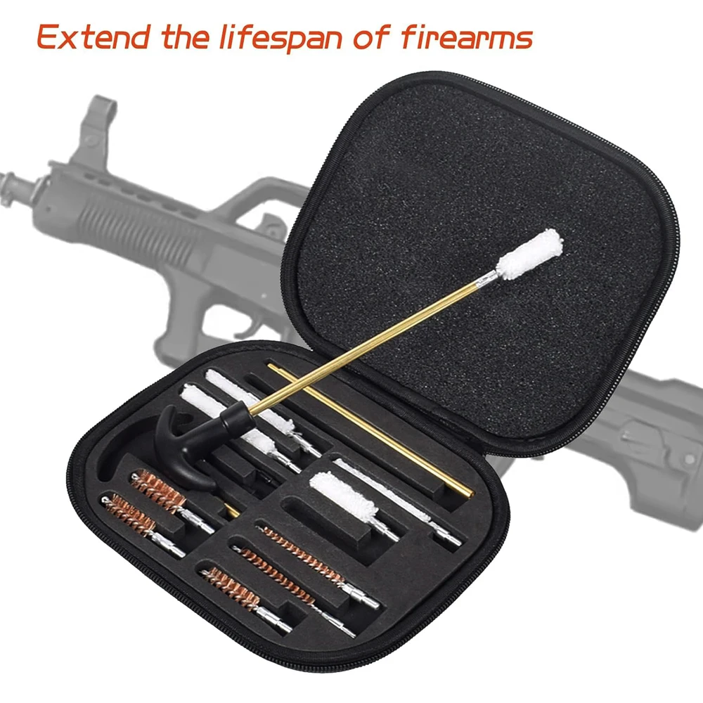 Diseño compacto y liviano para fácil transporte y almacenamiento, adecuado para la limpieza del hogar, el campo de tiro o actividades al aire libre, manteniendo las armas limpias en cualquier momento y en cualquier lugar.