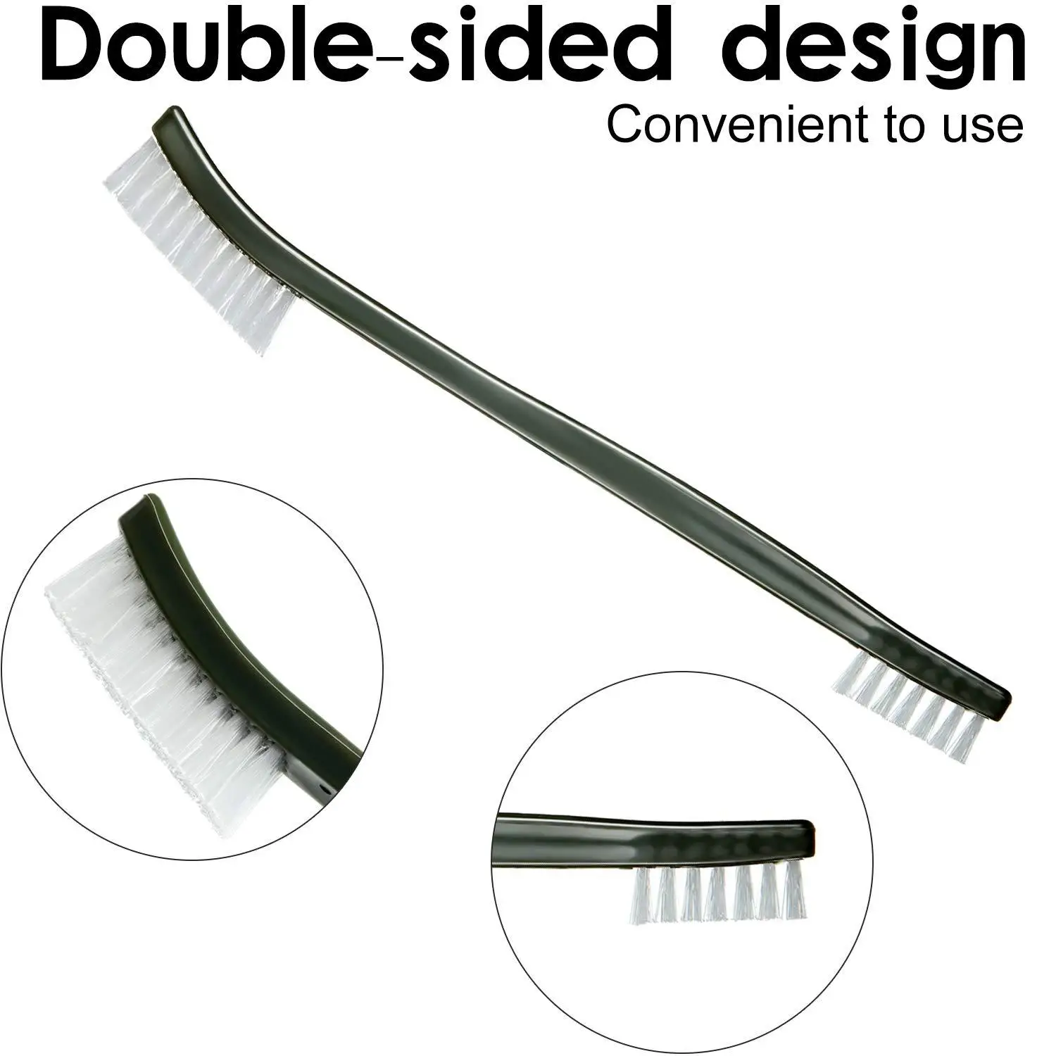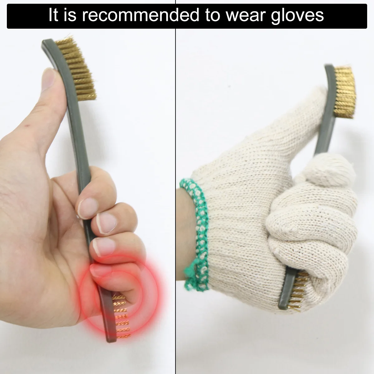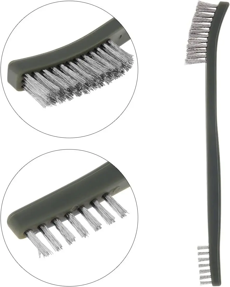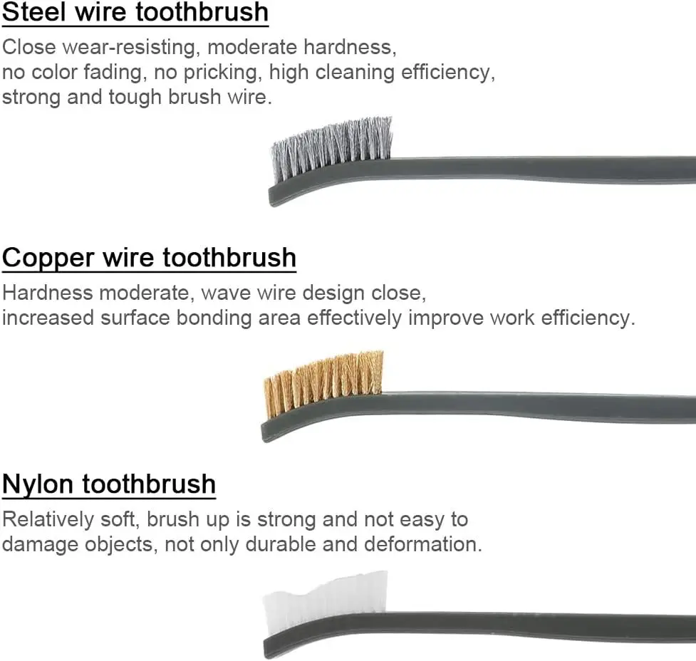 Cada uno de nuestros cepillos tiene un extremo grande y un extremo pequeño para limpiar todo tipo de espacios difíciles de alcanzar. El cepillo de latón elimina fácilmente los depósitos de carbono duro y las incrustaciones en las caras de los pernos y los pistones de gas. El cepillo de cobre para eliminar el óxido externo generalmente se reserva para engranajes más finos, el cepillo de nylon es perfecto para piezas pequeñas, Y rieles deslizantes. Los cepillos de acero se pueden utilizar en situaciones especiales.