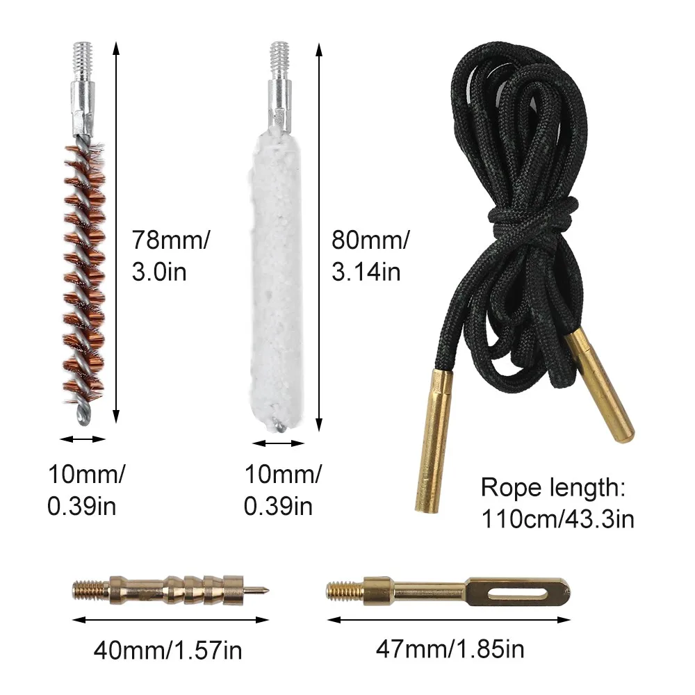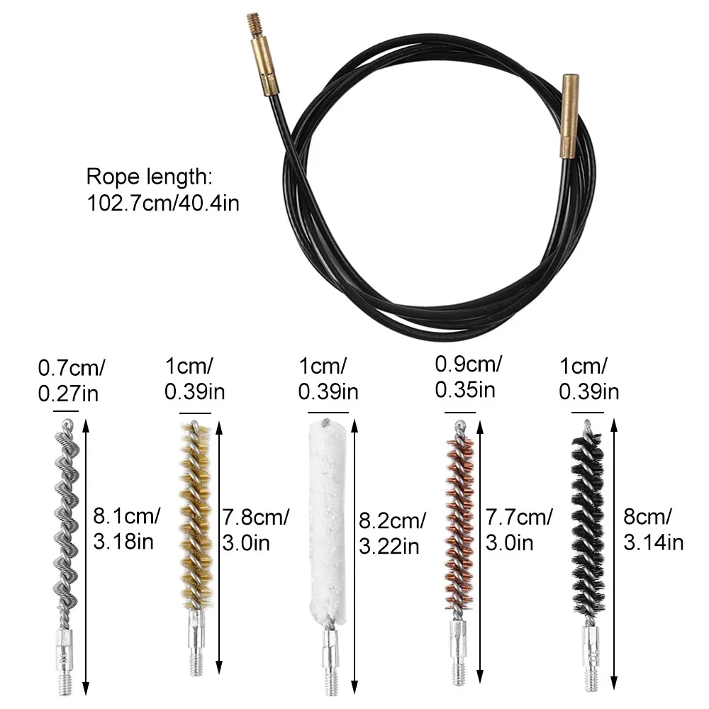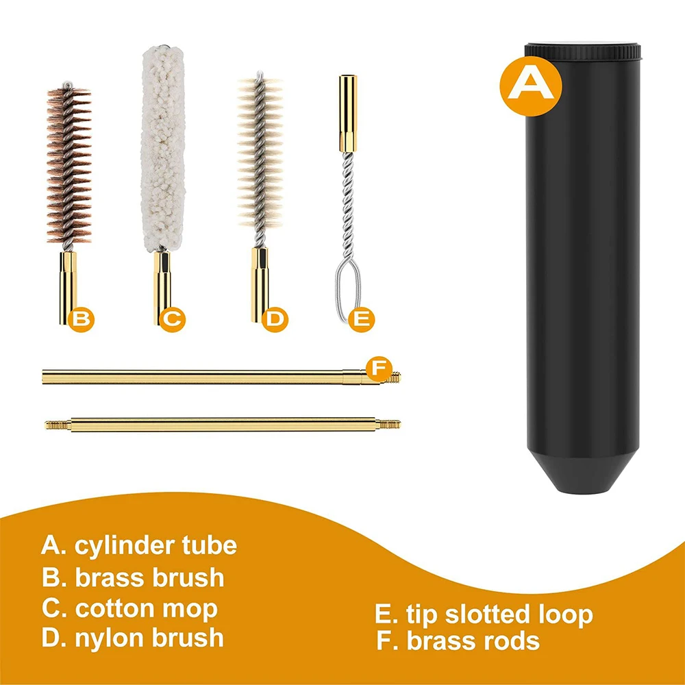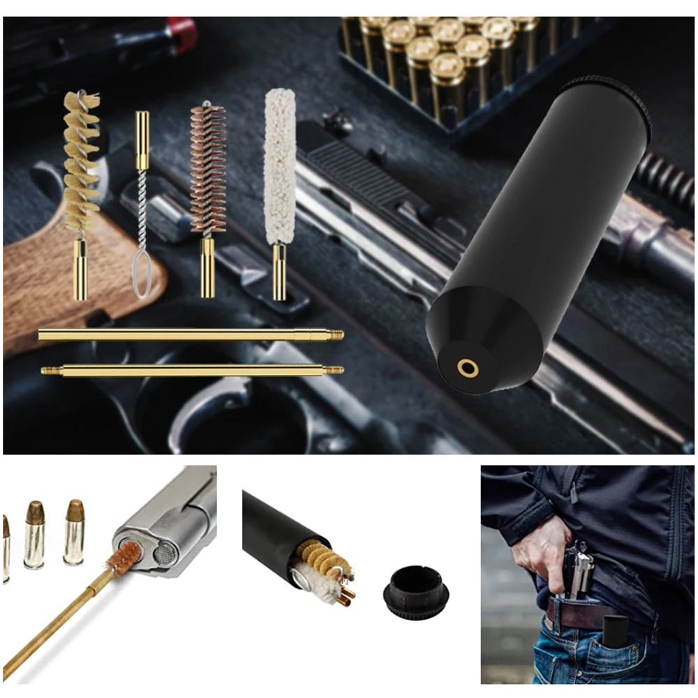 Kit de limpieza de pistola universal calibre. 38/.357/9mm con varilla de cepillo de latón fregona de algodón Juego de Herramientas de limpieza portátiles de bucle ranurado