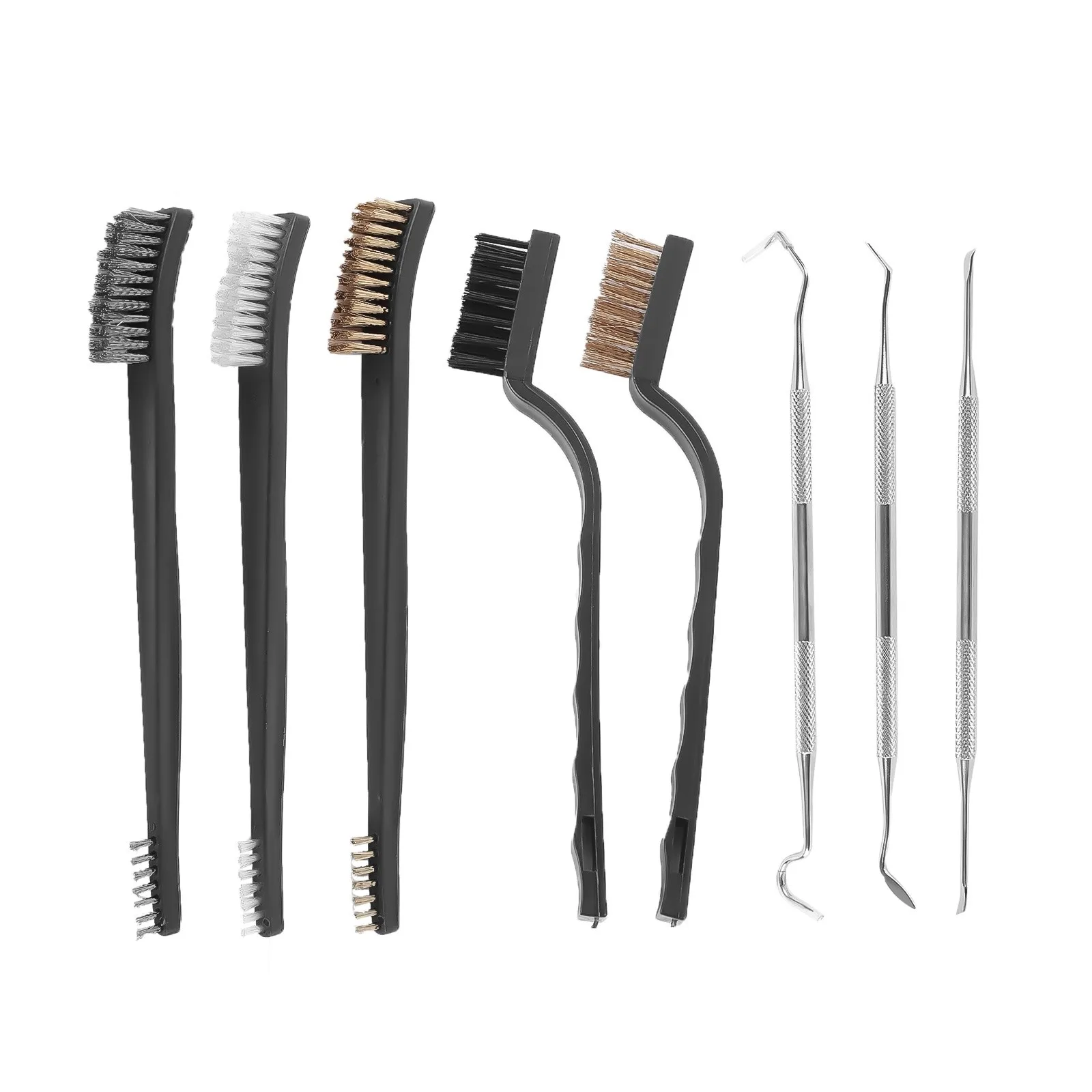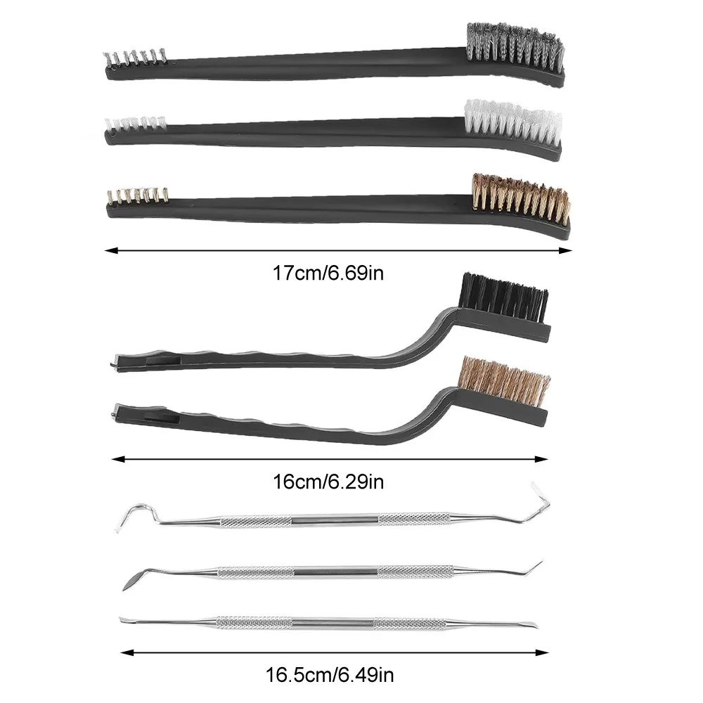 1. Los suministros de limpieza universales para pistolas cuentan con 2 cepillos, ranurado bucle 1, 1 fregona de algodón, 2 varillas y 1 mango.
