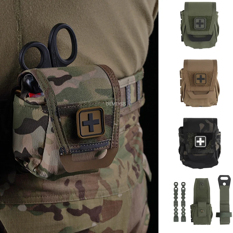 ●Equipado con clips MOLLE.Es fácil y conveniente instalar y quitar la bolsa médica de su cinturón de servicio o chaleco táctico.