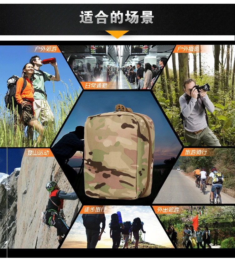 Características Bolsa multifuncional de lona para exteriores, Bolso pequeño, 6 colores opcionales, diseño portátil, duradero y práctico, para llevar mientras acampa o realiza actividades al aire libre, es bueno para las mismas piezas pequeñas, llaves, monedas y dinero en efectivo, etc.Molle diseñado para adaptarse al chaleco del sistema Molle, mochila, etc. Construido con material de nylon de alta calidad.
