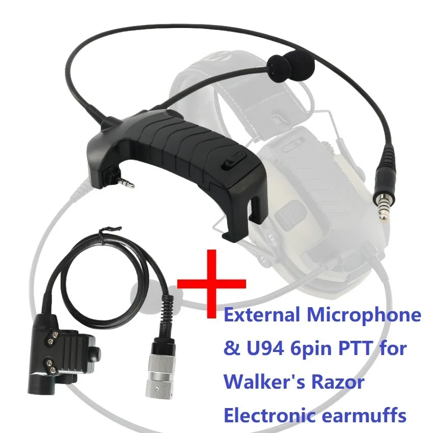 Kit de micrófono externo para Walker's Razor, orejeras electrónicas, auriculares tácticos de tiro Airsoft para intercomunicador táctico PRC 152/PRC 148