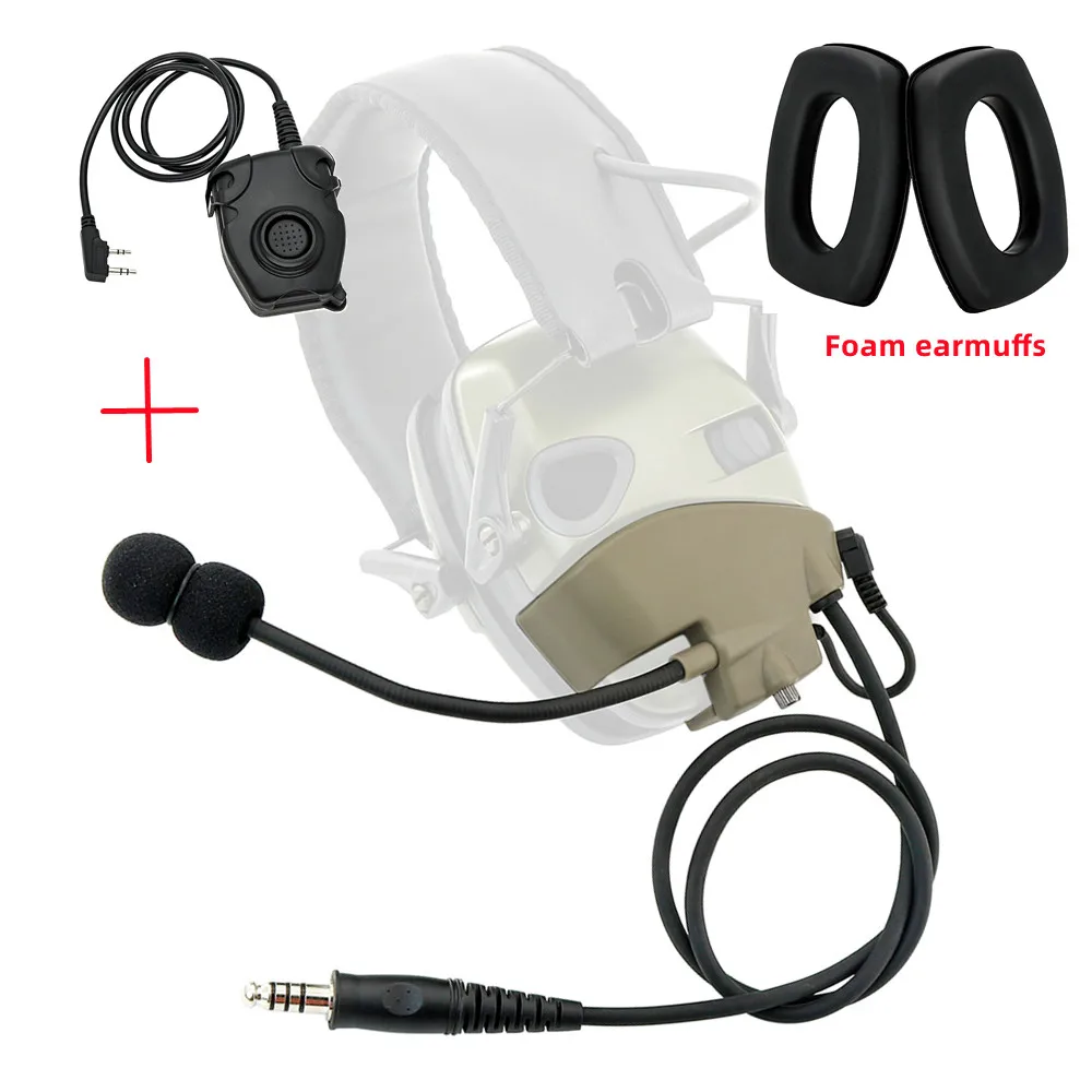 Kit de micrófono y auriculares tácticos con orejeras de espuma PTT tácticas para Howard Leight Impact, auriculares para deportes al aire libre, tiro y caza